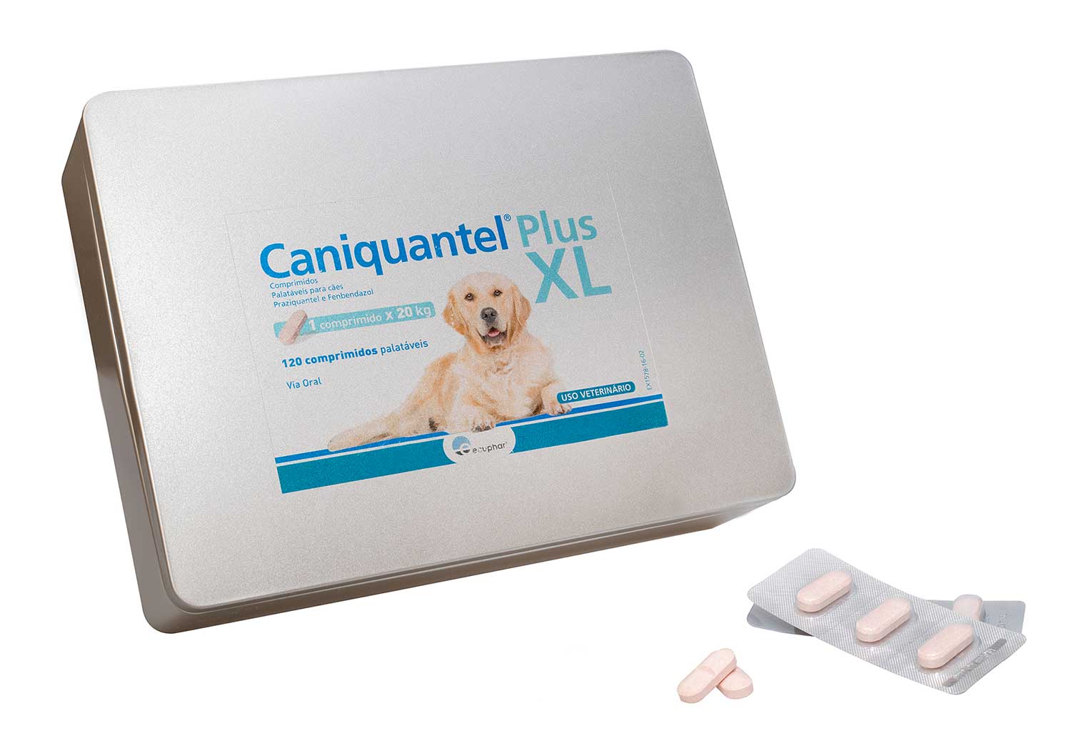 Caixa metálica de 120 comprimidos palatáveis